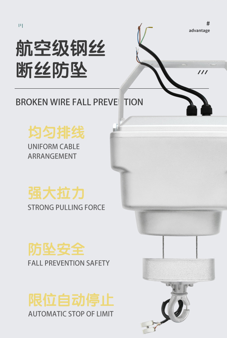 *动滑轮双丝升降设计,运行更平稳;
